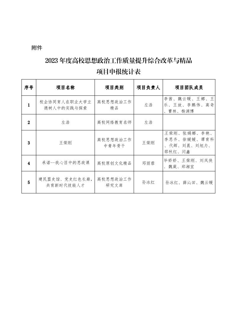 2023 年度高校思想政治工作质量提升 综合改革与精品项目申报的公示