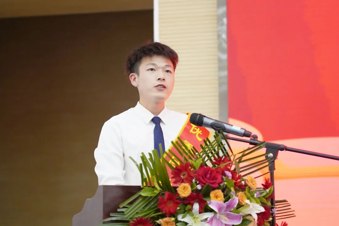 汽车工程学院车辆工程专业1901班的陈朝阳代表受表彰学生进行发言,分享所思所想,共话青春使命。
