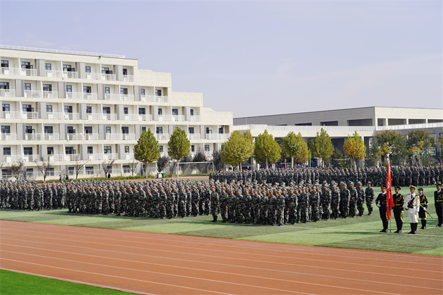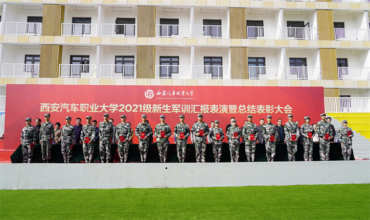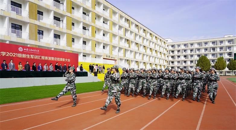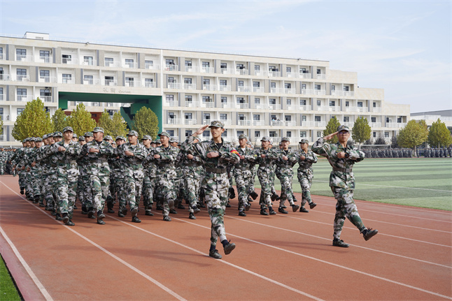 10月22日上午,我校2021级新生军训成果汇报暨总结表彰大会在操场举行。校长李瑞明,校党委书记孙冰红,执行校长雷亚萍,副校长张陵、雷鸣,校长助理乔祎、穆乾坤、赵国亮,赵军,二级学院院长及相关职能部门负责人共同出席大会,军训团各营营长、教导员及全体2021级参训新生参加大会。大会由校长助理赵军主持。