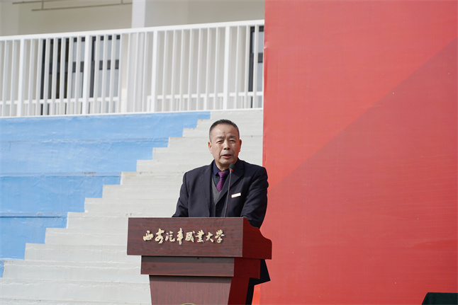 雷鸣做军训工作总结。他对军训期间辛勤付出的教官和新生班辅导员表示感谢,对顺利完成军训任务的同学表示祝贺,并对2021级新生未来几年的学生生活寄予希望和祝福。
