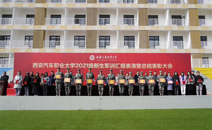 校领导为获表彰的军训工作先进集体和优秀个人颁发了奖牌和荣誉证书。