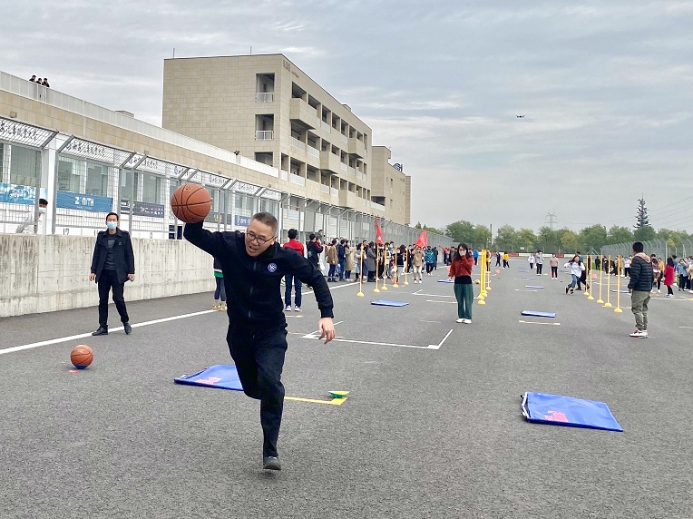 比赛现场气氛紧张热烈又趣味十足。平日里,他们在三尺讲坛辛勤耕耘,在实验室里搞科研,在办公桌前忙碌,但此时此刻,大家你追我赶、奋勇争先,充分展示了我校教职工顽强拼搏、团结协作的良好精神风貌。