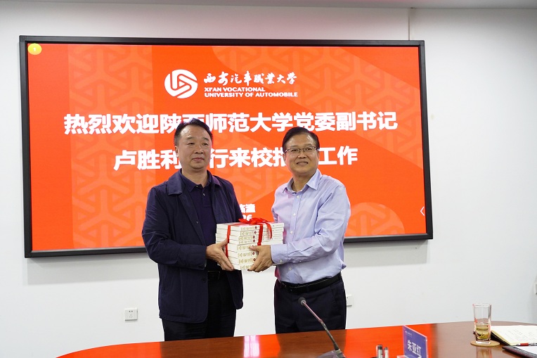 座谈会结束,卢胜利代表陕西师范大学向我校赠书并合影留念。