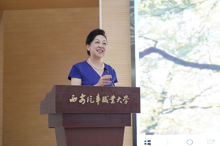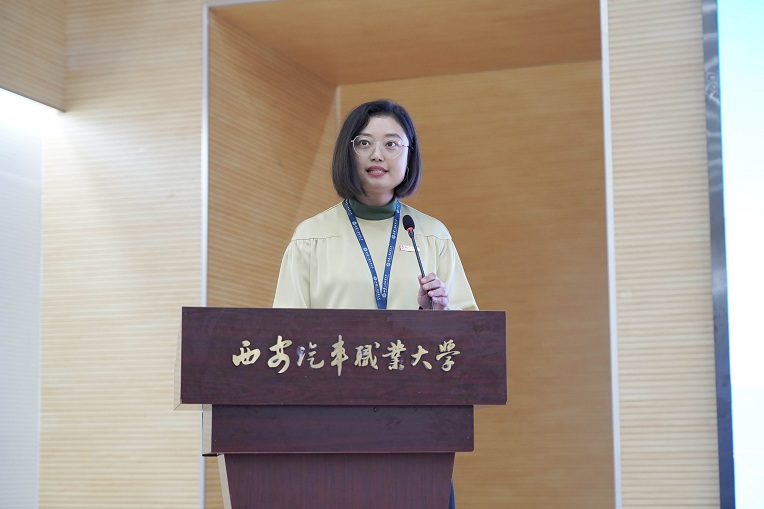 电子信息工程学院副院长金宜南作为优秀教师代表发言。她在发言中分享了她在西汽17年的教师生涯。她说作为一名职业本科院校的教师,应该要有一种紧迫感、使命感,需要不断学习,与时俱进,开拓创新,学习新知识,掌握新技能,尊重教育教学规律和人才培养规律,将育人和育才相统一,抓好专业课程思政建设,做学生的引路人,做新时代知识的传播者,文化的创新者,自觉承担起知识分子在社会发展中的角色,以适应社会对教师提出的更高要求。