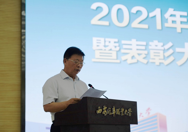 为庆祝第37个教师节,9月10日,我校在三省楼渭水厅召开2021年度庆祝教师节暨表彰大会,向辛勤耕耘在教育一线上的广大教职员工致以衷心感谢,并表彰过去一学年以来取得优异成绩的先进教职工。全体校领导,全体教职工,部分学生代表400共计余人参加本次大会,会议由执行校长雷亚萍主持。