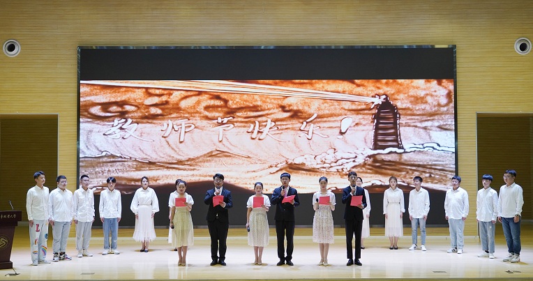 学生在歌舞朗诵中向老师们送上最诚挚的节日祝福。
