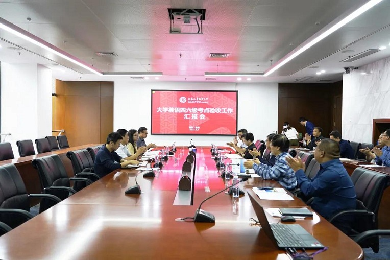 张陵就我校发展历程和我校近年来在本科层次职业教育所取得的成绩做简要介绍,重点对全国大学英语四、六级考场规划、考务管理平台建设、标准化考场建设、考务管理、监考巡查、试卷安全保密、听力保障措施、安全应急预案等工作进行了详细的汇报。