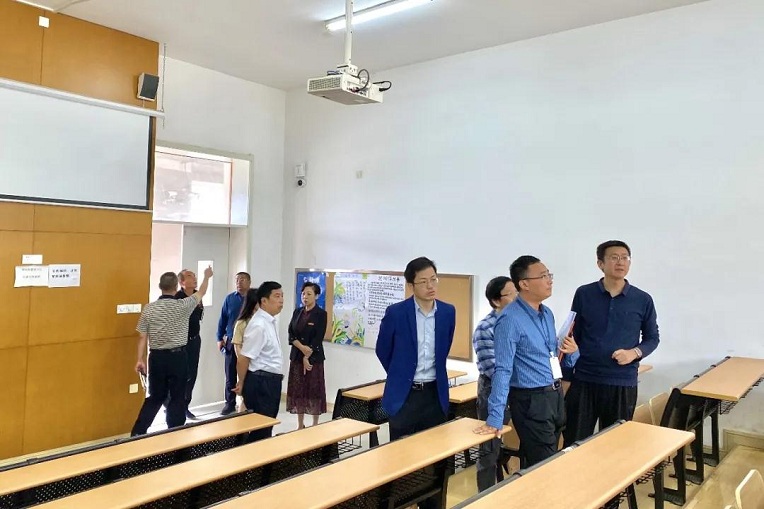 专家组听取工作汇报后,对我校考务中心、保密室、广播站、听力室、监控室、放音室和考试教室等各项软、硬件设施进行实地考察,并现场提出整改意见。