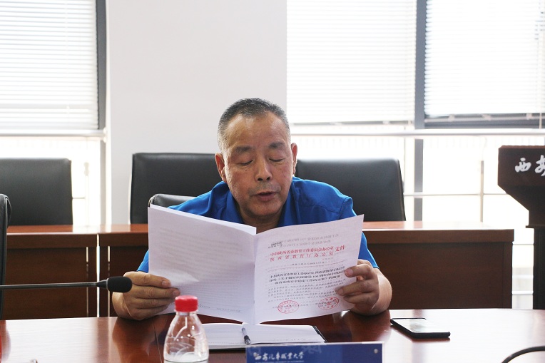 会上,由党政办李斌、副主任周广旗分别传达了,关于中共中央办公厅印发《认真学习贯彻习近平总书记在庆祝中国共产党成立100周年大会上重要讲话精神》的通知;习近平在“七一勋章”颁授仪式上 的讲话;陕西省委教育工委、省教育厅党史 学习教育领导小组《转发省委党史学习教育第二阶段巡回指导工作安排的通知》;陕西省委教育工委、省教育厅党史 学习教育领导小组《关于认真开好党史学习教育专题组织生活会》的通知。