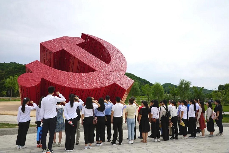 党徽广场庄严肃穆,在坚毅的誓词声中,再一次表达入党初心,坚定前行。随后,大家在广场合影留念,将红色基因传承下去。