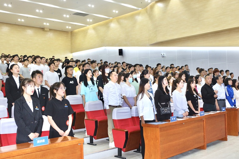 为热烈庆祝中国共产党成立100周年,回顾学习党的百年奋斗历程,传承践行党的初心使命,引导我校全体党员干部职工爱党爱国,5月12日下午,我校在三省楼渭水厅举办“学党史,知党情,强信念,更党走”主题演讲比赛。人文学院院长康凯、学生处处长赵军、党政办副主任周广旗、校团委书记李嘉政、各二级学院老师及第27期党课400余名学生参加观看本次比赛。