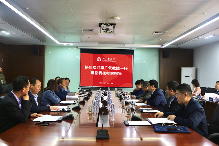 4月27日上午,信息工程大学李广云教授、马智刚教授,陕西省市场监管局二级巡视员许武勤一行莅临我校就特色办学、人才培养及实训教学等方面进行考察调研。