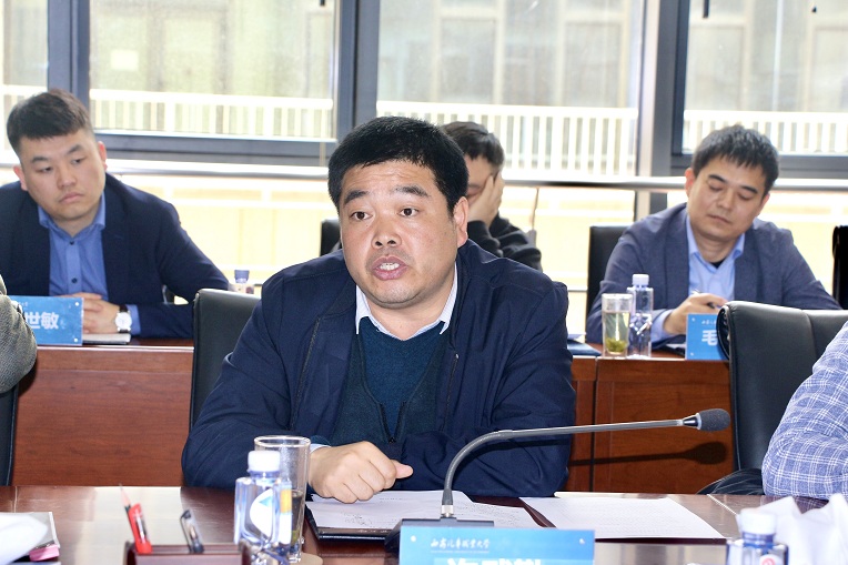 随后,考察组一行在三省楼三楼会议室与我校校领导进行交流座谈。会上,李瑞明从我校的发展历史、学科建设、办学理念、育人模式、职业教育等方面进行了详细介绍。李广云教授对我校办学定位、教学设施、校容校貌给予了充分肯定。