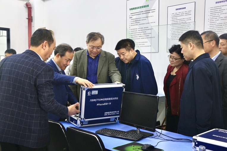 考察组在我校领导陪同下,先后前往新能源汽车学院、校企合作中心、汽车工程学院实训中心、汽车大学赛车场、图书馆等场所进行实地考察。