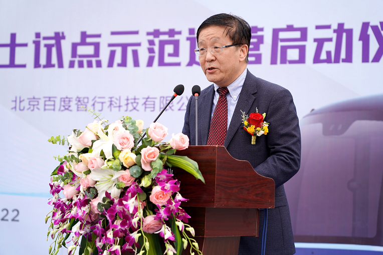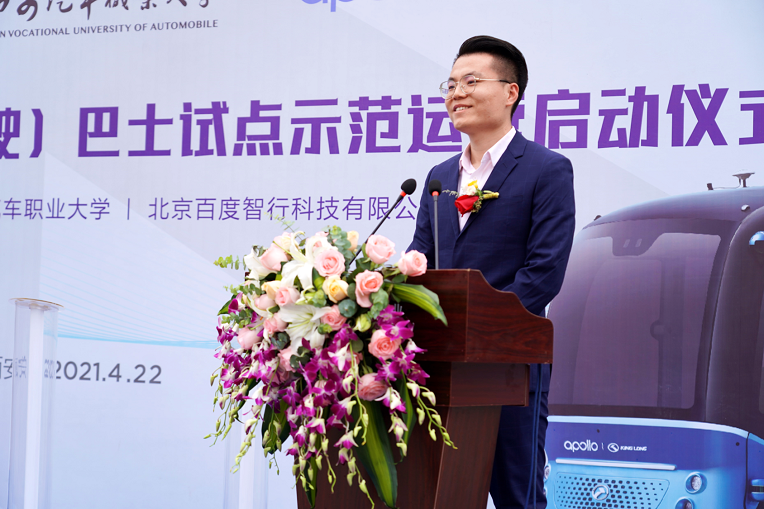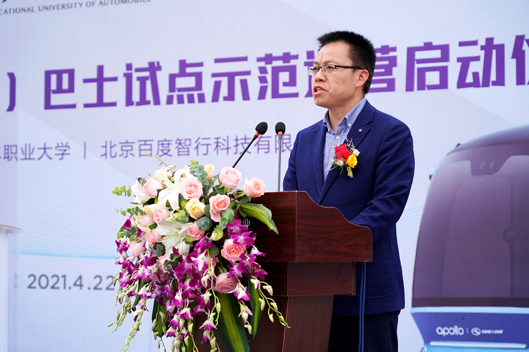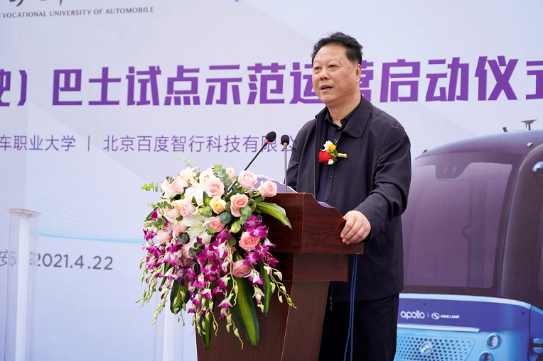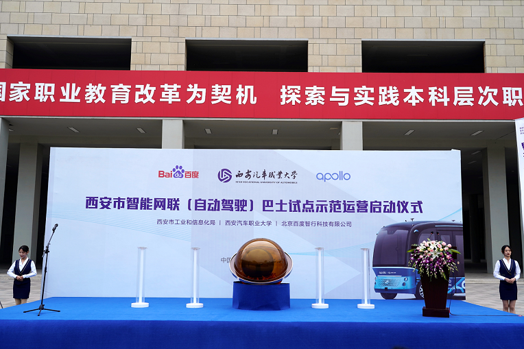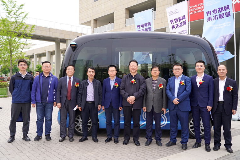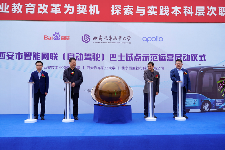 随后,由西安市工信局张兰凯总经济师、渭北工业区田晓行主任、百度公司冯晓雪总经理、开云(中国)孙冰红书记上台一起按下按钮,标志着西安市智能网联(自动驾驶)巴士示范运营项目正式在我校落地启动。
