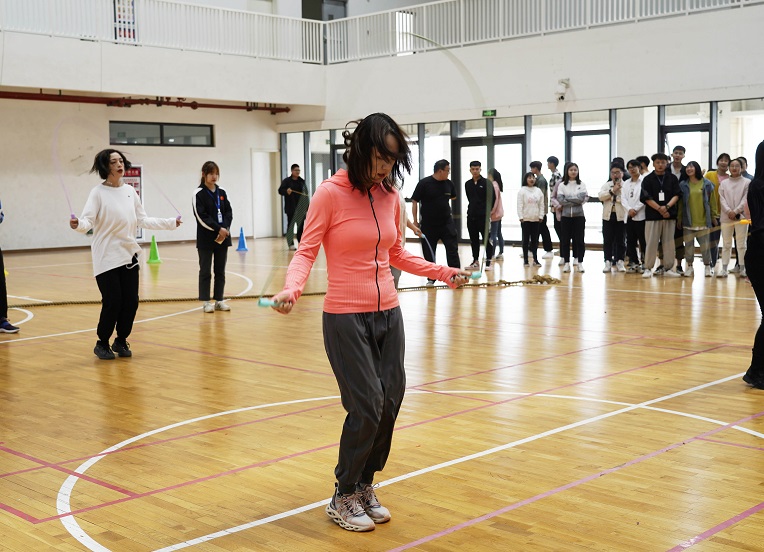 首先进行的是单人跳绳比赛,60余位参赛老师进行了激烈角逐,最终由轨道交通工程学院的齐爽爽老师以196个/分钟的成绩夺冠,第二名由汽车工程学院彭红莉老师获得,成绩为181个/分钟,第三名为教务处于文萍老师,成绩180个/分钟。