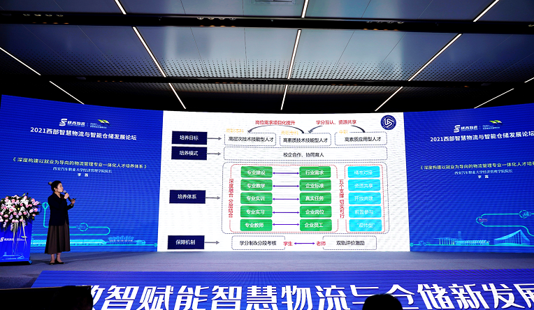 4月10日上午,我校经济管理学院院长李茜受邀参加物博会“2021西部智慧物流与智能仓储发展论坛”,她从KY.COM教学实际出发,结合国家职教改革政策、我校校企合作创新模式、学院物流管理产教融合范例及近年人才培养成果等四个方面内容,以《深度构建以就业为导向的物流管理专业一体化人才培养体系》为题,在大会论坛发表主题演讲,向与会嘉宾和近百位企业代表介绍了我校在职业本科人才培育方面的积极探索和显著成效。