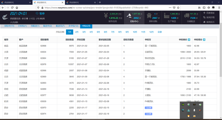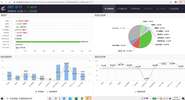 本次比赛设模拟赛、积分赛、决赛三个阶段,参赛队使用比赛账号登录竞赛平台,模拟运营一家虚拟企业的供应链全过程;模拟运营周期为一虚拟年,竞赛以平台设置的虚拟起始日期为准,每30秒前进一天;团队的参赛人员在竞赛发布后可进行融资贷款、市场竞标、工厂选址、生产管理、产能升级、品质提升、供应商协议签订、原料采购、仓储管理、配送管理等环节抉择出优胜者。
