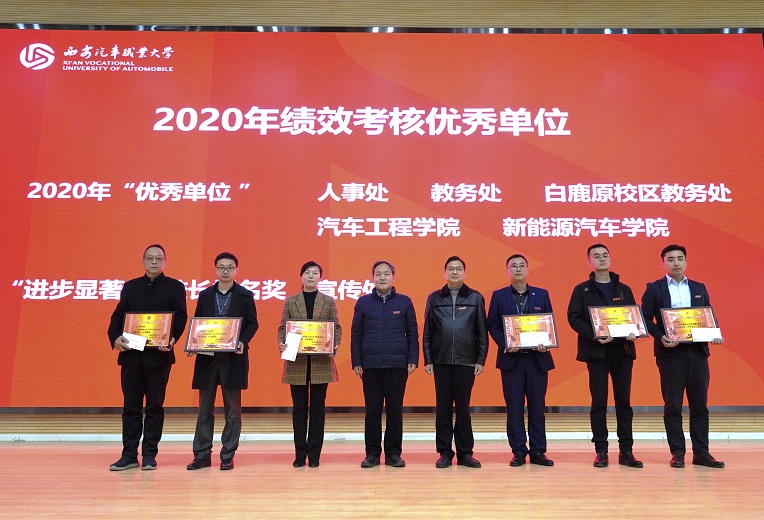 会议开始,副校长雷鸣宣读了《开云(中国)关于表彰2020年度绩效考核先进集体单位的通报》。校长李瑞明、党委书记孙冰红为2020年度获奖优秀单位组织颁发了荣誉证书。获得2020年度绩效考核先进单位分别是人事处、教务处、白鹿原校区教务处、汽车工程学院、新能源汽车学院,另宣传处荣获校长提名奖。