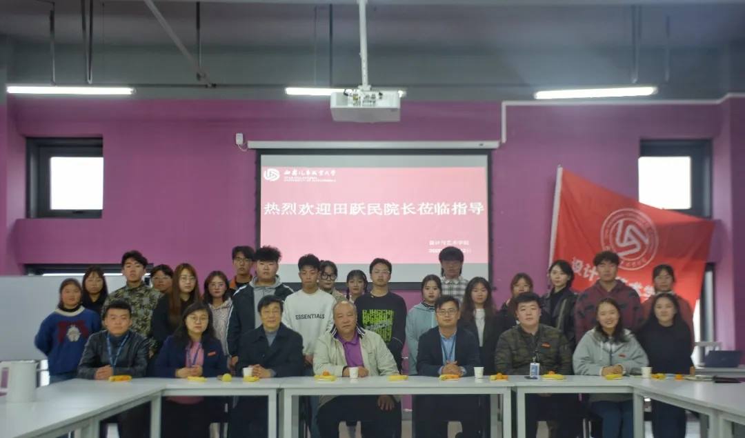 座谈最后,设计与艺术学院师生与田院长合影留念。会后同学们纷纷表示,与大师对话是一种享受,这次与田跃民院长的的交谈让自己印象深刻,深有感触。