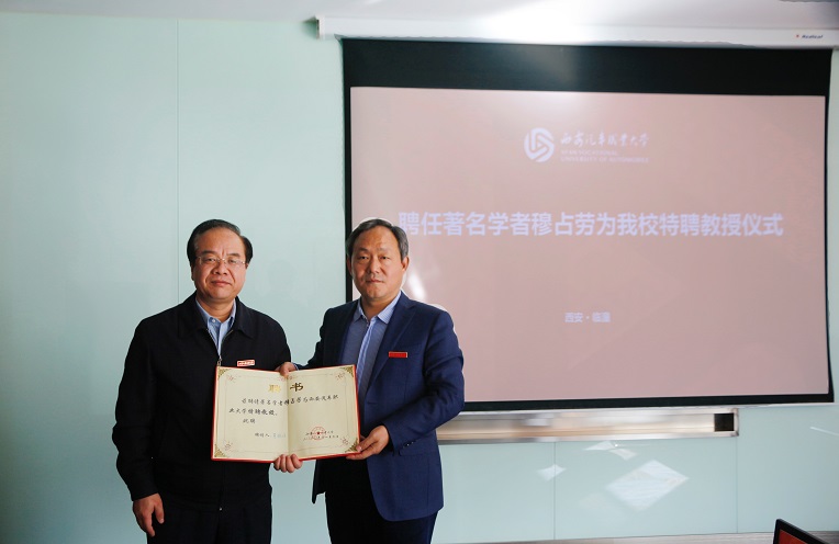 聘任会结束后,借助我校金秋学术月之《西汽大讲堂》系列讲座活动,穆焦教授在渭水厅为我校师生讲授《百年大变局下的国际形势与中美关系》,两小时的报告将当代历史、中央的目标与当代需求、中国与外国现状融为一炉,把马克思主义理论、党建理论、习近平新时代中国特色社会主义思想、近代中国史、美国当代史娓娓道来、如数家珍。