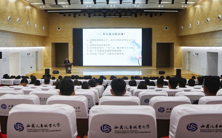 聘任会结束后,借助我校金秋学术月之《西汽大讲堂》系列讲座活动,焦教授在渭水厅为我校师生讲授《做一个有文化灵魂的中国人》,反响热烈,师生对文化有了更新更深的领悟。