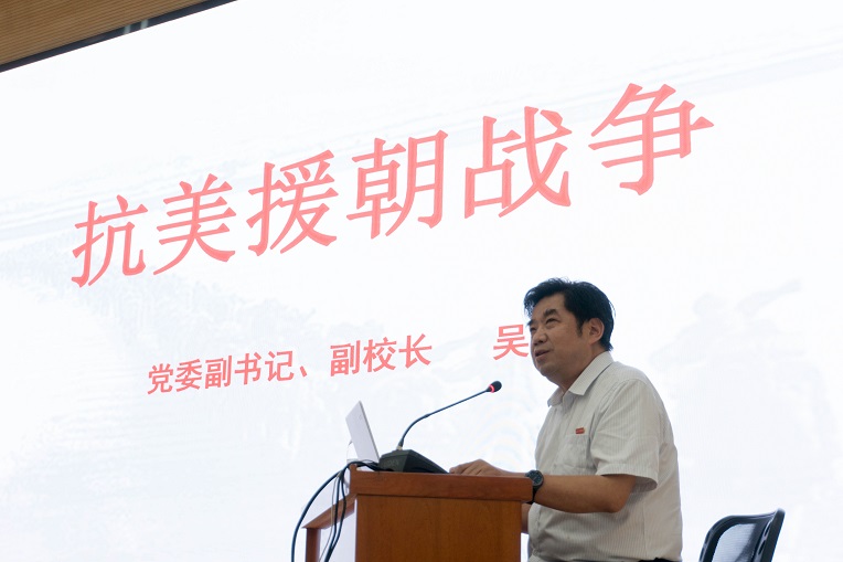 7月13日晚,我校党委副书记、副校长吴毅在渭水厅做题为《抗美援朝战争》的主题党课,各学院300多名学生党员以及入党积极分子参加了本次党课学习。