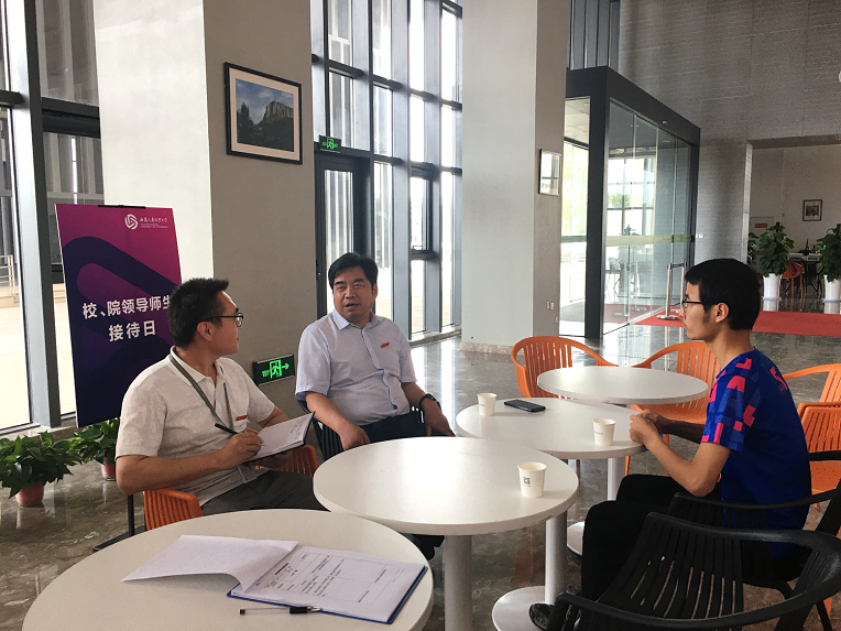为了继续深入学习贯彻习近平总书记关于“不忘初心、牢记使命”主题教育的重要讲话和重要指示批示精神,根据《关于设立开云(中国)师生接待日制度的通知》(西汽校字〔2019〕90号)文件精神, 2020年7月3日下午,我校2019-2020学年度第二学期第三次校院领导接待日活动如期在三省楼一楼进行,副校长吴毅、科技处处长李海鸽、图书馆馆长王哲等热情接待来访学生。