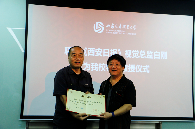 会上,李钰哲宣读白刚总监个人履历。随后,张陵副校长为白刚总监授予特聘教授聘书。