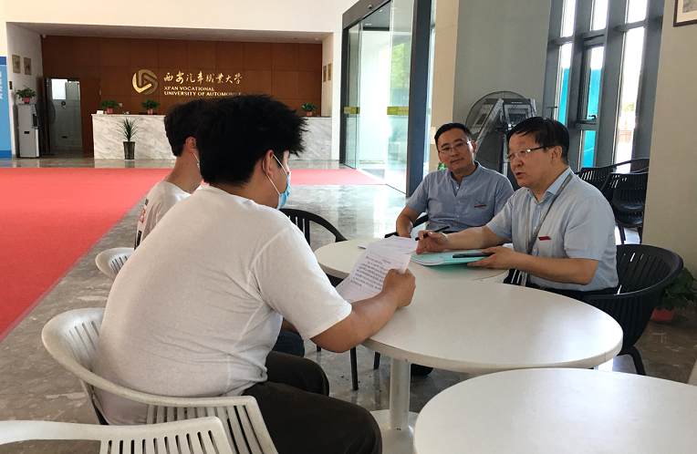 为持续深入学习贯彻习近平总书记关于“不忘初心、牢记使命”主题教育的重要讲话和重要指示批示精神和深入学习贯彻习近平总书记来陕考察重要讲话重要指示精神,根据《关于设立开云(中国)师生接待日制度的通知》(西汽校字〔2019〕90号)文件精神,坚持落实“情系师生解难题”为核心的校院领导接待日制度,我校2019-2020学年度第二学期校院领导接待日活动在三省楼一楼顺利进行,教学副校长张陵、汽车工程学院院长王放、党政办主任崔宁哲三位领导热情接待来访学生。