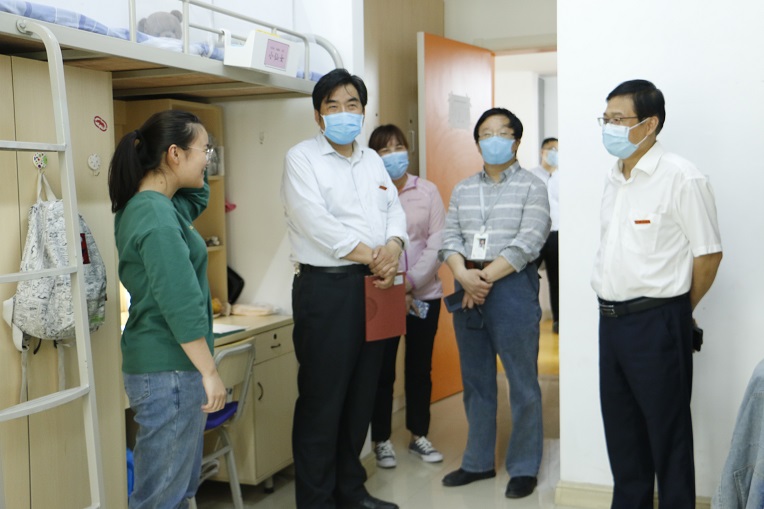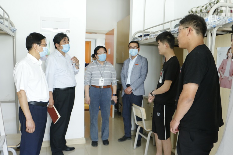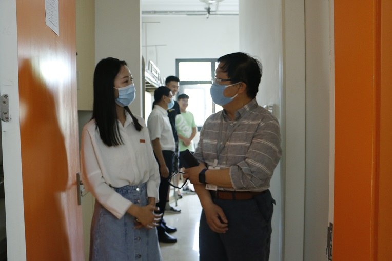 5月17日下午,KY.COM疫情防控工作小组由党委书记孙冰红带队,再次前往学生公寓进行走访检查疫情防控工作落实情况,询问在公寓休息的学生返校情况并看望值守一线的辅导员和志愿者。副校长张陵、吴毅,校长助理赵国亮、雷鸣,校长秘书乔祎及党政办、学生处领导随同走访。