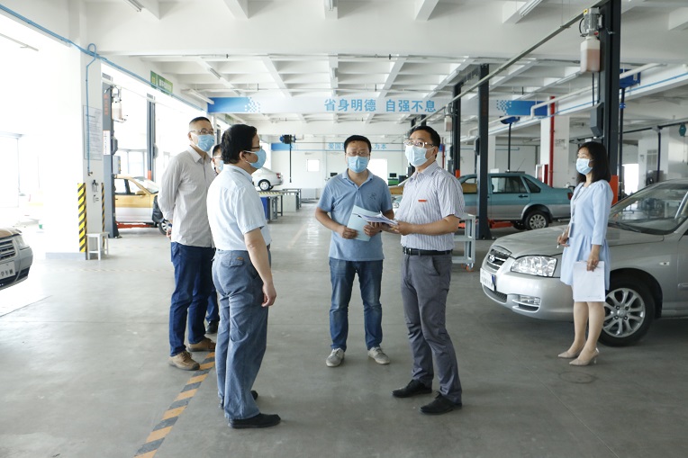 在升旗仪式结束后,副校长张陵和教务处处长左浩一起到实训楼检查上课情况,和正在上汽车检测的同学们一起听课,并在课后向授课教师详细询问了疫情防控期间实训课程的开展情况。