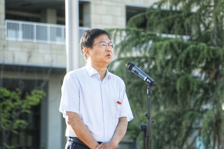校党委书记孙冰红、校长助理赵国亮、学生处处长赵军参加升旗仪式,孙冰红发表讲话。