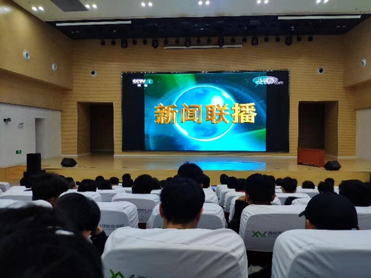 每晚组织学生收听收看《新闻联播》,师生反响热烈。