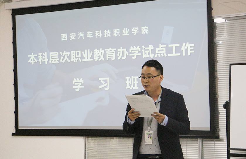 会议最后,潘院长在学习班的总结中讲到:“我们通过开展本科层次职业教育办学试点工作学习班,走访考察了一些单位和院校,看到了自身的差距和不足,也明确了下一步整改的目标和方向。交流和学习让我们进一步认清了我国职教改革的新形势,提升了我院全力做好本科层次职业教育试点工作信念,坚定了完成学院更名为“西安汽车科技学院”的决心和信心!”