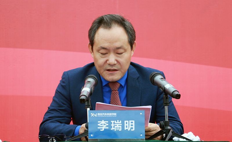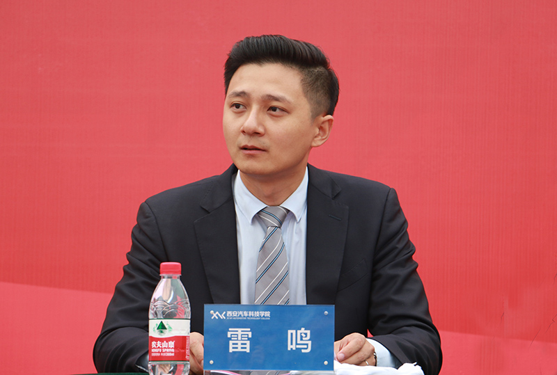 新能源汽车系主任李鹏伟代表教师发言,希望同学们要有爱,要爱自己,做到了才能爱别人;希望同学们学会感恩;希望同学们有诚信、责任心和荣誉感;祝愿同学们在学院全面发展、学业有成,愉快度过美好的大学时光。