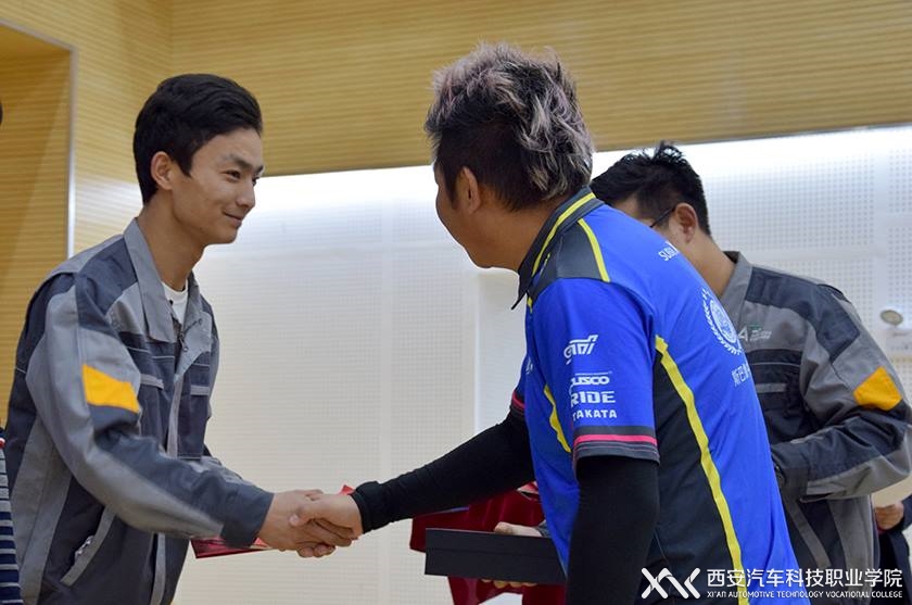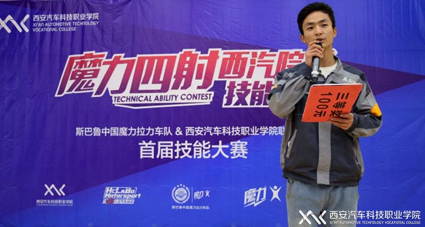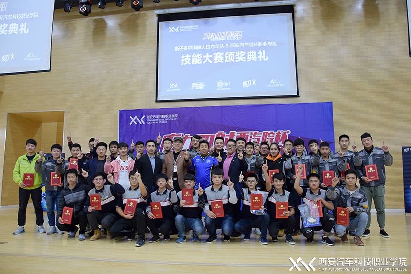 2017年11月10日下午,西安汽车科技职业学院与斯巴鲁中国魔力拉力车队在临潼校区举行了首届“魔力四射西西安汽车科技学院杯”技能大赛颁奖典礼。典礼上临潼校区学生事务部主任侯惠民和深圳市汇力堡汽车文化传播有限公司总经理邵帅共同为获奖选手和优秀指导教师颁奖表彰。