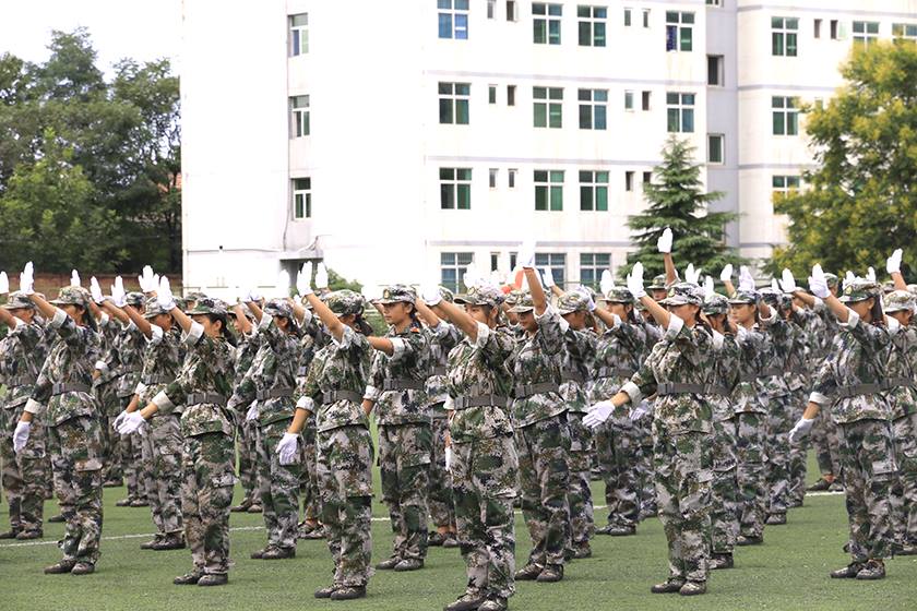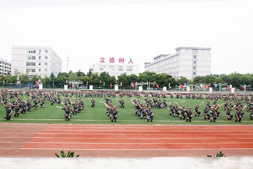 穿着军装的新生跳小苹果实在有趣,但拼出校徽的队列变形更让人印象深刻,当每一位同学喊出“立德树人”时,我们知道,你们已经成为学院不可分割的一部分了。
