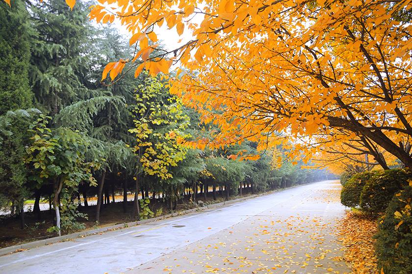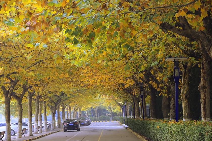 同学亦或密友也会如西西安汽车科技学院的深秋,