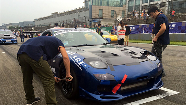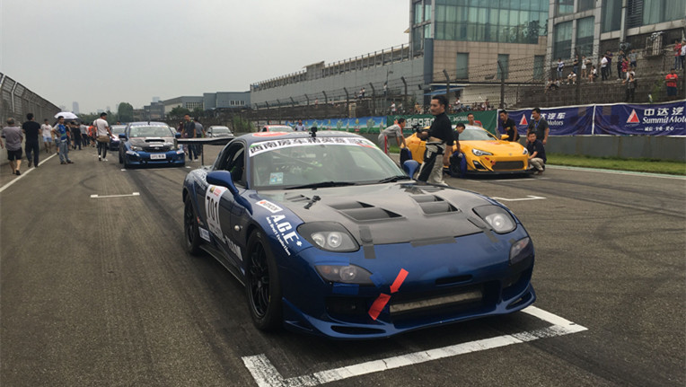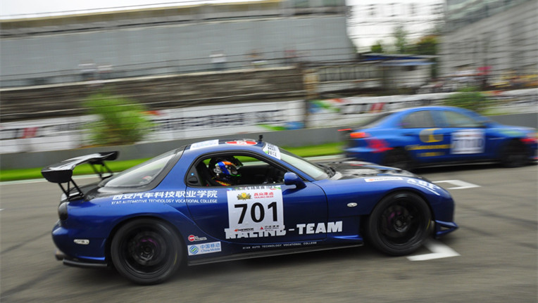 最后压轴的超跑A&B组同场竞技。发车不久,来自西安汽车科技职业学院RACING-TEAM车队的赛车RX-7快速超越A组第三杆位选手,之后紧追超跑A组第二名。比赛进行几圈后,RX-7将B组第二名车手落下七八百米,随即一路遥遥领先,最终以单圈最快1分39秒201率先跑完12圈冲过终点线,夺得超跑B组冠军。