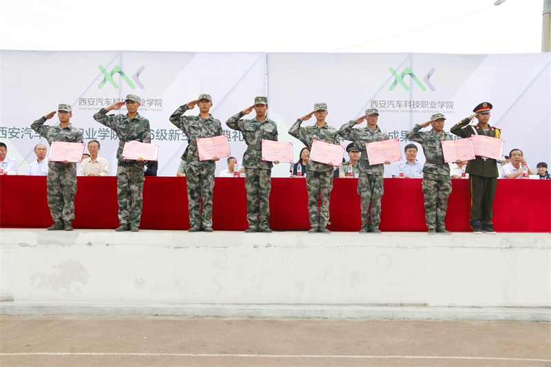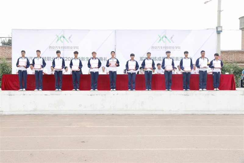 大会在雄壮的国歌声中拉开帷幕。随后,检阅参训方队,同学们情绪高昂,英姿飒爽,伴随着雄壮的解放军进行曲,分列式正式开始。在庄严盛大的分列式表演中,6支军训方队依次列队入场。他们迈着矫健的步伐、喊着响亮的口号,走过主席台接受检阅。一排排整齐划一的队列,一声声震彻云霄的呐喊,展示了21天来艰苦训练的成果。随后,受阅方队进行了精彩的队列动作表演、双节棍术表演、擒敌拳表演、花样队列表演、反恐演习科目表演等单项训练项目表演,军容严整、动作到位、精神抖擞,精彩的表演赢得阵阵喝彩,尽显西西安汽车科技学院学子朝气蓬勃的精神风貌。