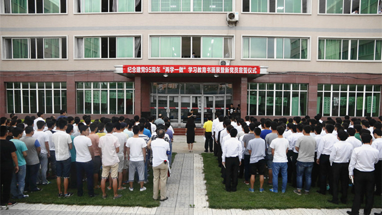 6月30日,学院党委在一号教学楼后的奚仲广场,隆重举行了纪念建党95周年、红军长征胜利80周年“两学一做”学习教育书画展暨新党员宣誓仪式,学院党委书记杨俊利、党委委员、常务副院长傅丰林、党委委员、副院长任弘罡、张庆林等学院领导出席,各党总支、党支部书记和400多名2015年下半年以来发展的预备党员参加了宣誓仪式。书画展暨新党员宣誓仪式在雄壮的《国际歌》声中开始,党委委员任弘罡副院长介绍了书画展作品征集情况, 400多名预备党员和参加宣誓仪式的老党员一起,冒着大雨面对党旗,庄严宣誓,汽车工程系李小鑫代表全体预备党员发言,学院党委杨俊利书记发表讲话。书画展暨新党员宣誓仪式由党委委员、常务副院长傅丰林主持。
