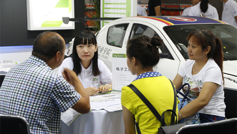 咨询会现场,我院展位前迎来了大批前来咨询的家长和考生,学院汽车工程系、交通工程系、机械工程系、电子工程系、城市轨道与铁路交通系、经济管理系等各系学科带头人向考生一一解答了学院的办学特色、招生政策和特色专业设置,为学生提供了志愿填报指导等贴心服务。在各个院校展厅里我院简约大气的车展风格显得与众不同,由金属展架搭建而成的展厅简洁而视野开阔,展厅内侧中央的菱形灯箱、LOGO,搭配展厅内的两辆改装赛车和一辆方程式赛车,宛如一场赛车展,时尚现代,充分展示了我们专业技术学院的特色以及走向现代化和国际化的趋势。