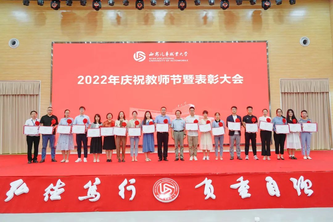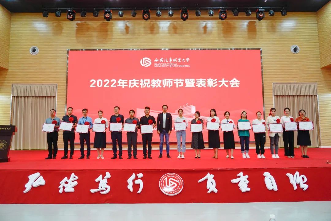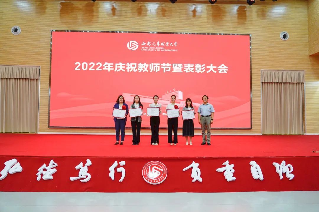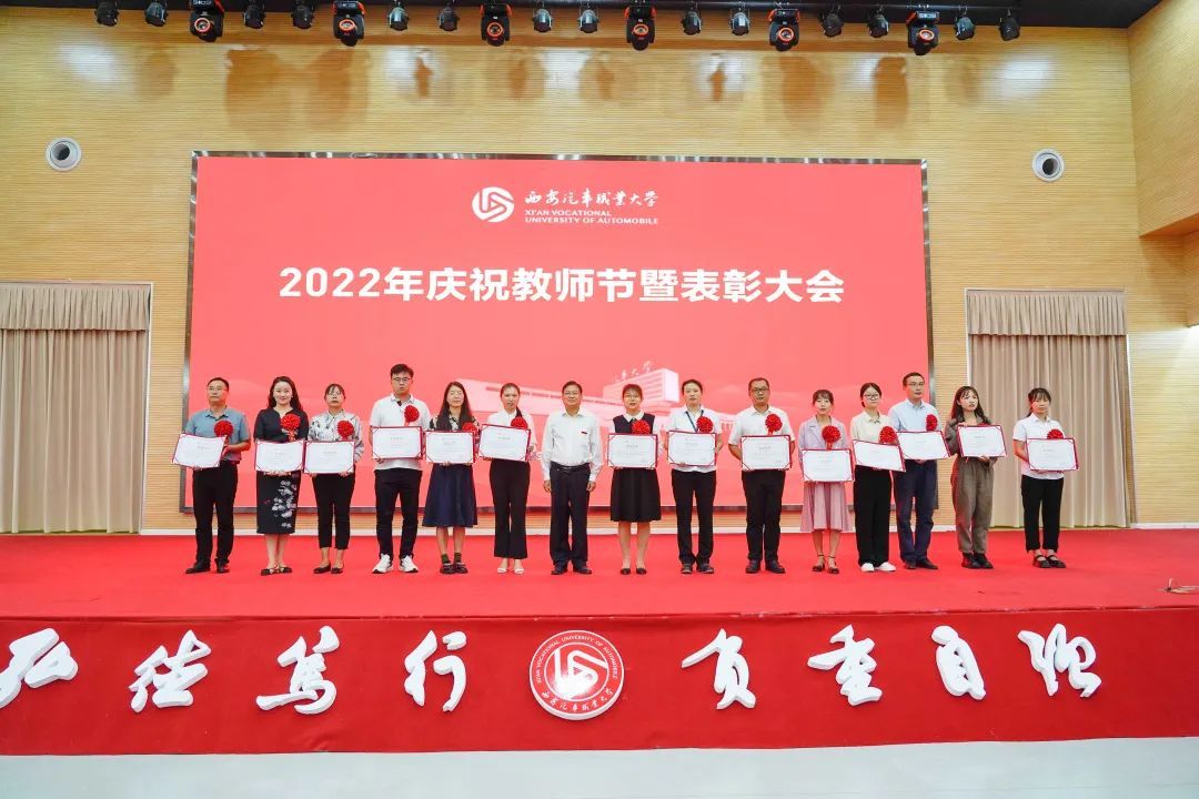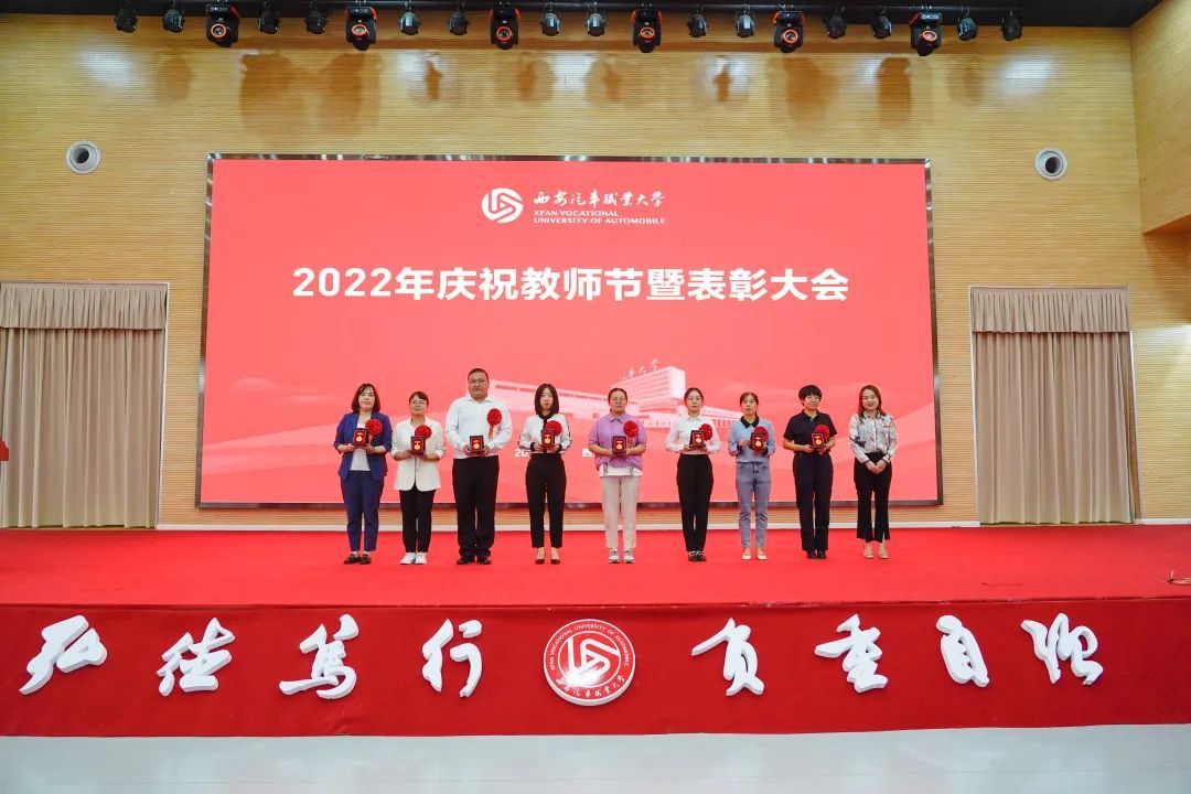 校党委书记孙冰红为汽车工程学院授牌“陕西省师德师范团队”,为获得2021年度师德师风建设先进集体代表和先进个人颁奖;