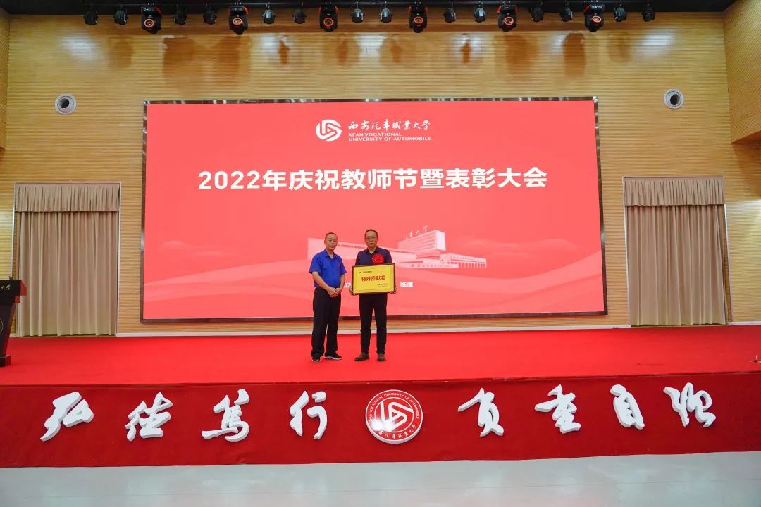 副校长张陵为“汽车工程技术陕西省高校工程研究中心”授牌,为获得“我心目中的好老师”,2021年度优秀教师、优秀辅导员颁奖;