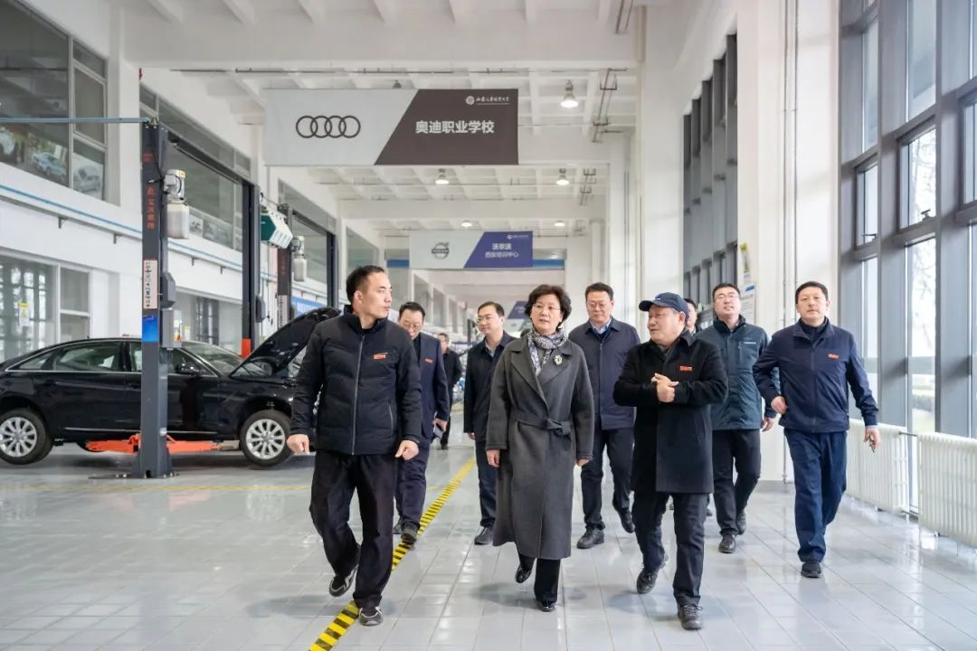 会后,李瑞明陪同黄晓君实地参观了红色长廊、渭水厅、新能源汽车技术实验实训室、校企合作中心、汽车教育体验基地(F3 赛道)、图书馆。
