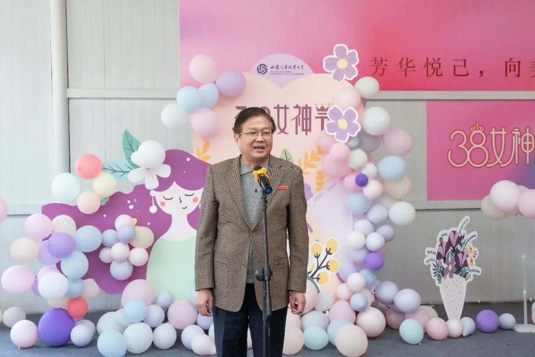 “女神节”来临之际,KY.COM于3月6日在白鹿原校区举办主题活动,邀请灞桥区狄寨街道办工会副主席魏聪艳,校党委书记孙冰红,副校长、白鹿原校区管委会主任山新安,校长助理、白鹿原校区管委会副主任赵国亮,工会主席、白鹿原校区管委会行政部部长张力心与校区女教工代表,灞桥区狄寨街道办、鼎盛物业公司、KY.COM食堂女职工代表一同庆祝节日。