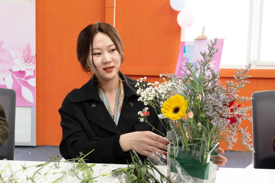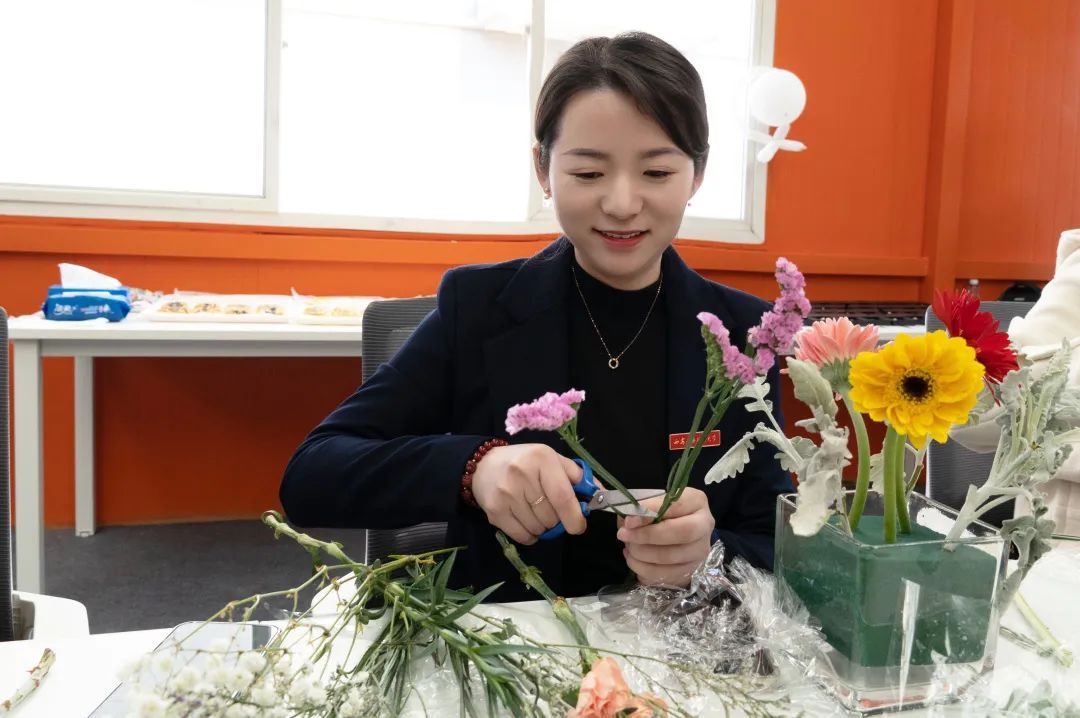 平日里繁忙的“女神”们,难得有机会放下手头的工作,全身心投入到插花活动中,大家在插花中寻找乐趣,从作品中获得满足,在交流中拉近距离,美丽的花束传递了美好和祝福,代表了节日的问候。以花之名,祝福大家在工作岗位上绚丽绽放,以更加自信的态度享受“花漾”时光。