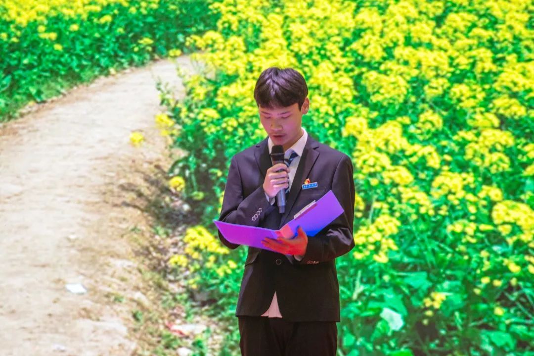 朗诵会分为“怀古抚今 诗话清明”、“慎终追远 缅怀先烈”和“礼赞春华 感恩西汽”三个篇章。活动中,同学们感悟清明,追思英雄,在缅怀先烈中赓续红色血脉,在铭记历史中汲取奋进力量。气清景明,万物生长,第三篇章伊始,人文学院张秦川院长的原创诗歌朗诵——《春天里的西汽》将活动推向高潮。本次活动受到了师生们的热烈欢迎,现场座无虚席。活动中也不乏同学们的原创精品,比如刘薇薇同学朗诵的《祭华夏先灵文》即是文学社赵振华同学的原创,文学社赵福森、许淙哲也为大家献上了王梦婷同学的原创诗歌——《春意暖西汽》,此外还有李轩同学的古体诗《暮春叹》。