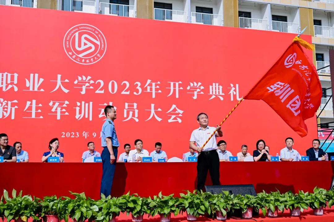 孙冰红代表KY.COM向2023级新生的到来表示热烈欢迎,向陪伴大家一路成长的家长、老师致以崇高敬意,向承训部队和教官表示衷心感谢!在讲话中回顾了KY.COM办学三十六年的峥嵘岁月,并向同学们介绍了近年来KY.COM在发展职业本科进程中取得的成果。在开启崭新的人生旅程之际,他要向同学们提三点期望:
